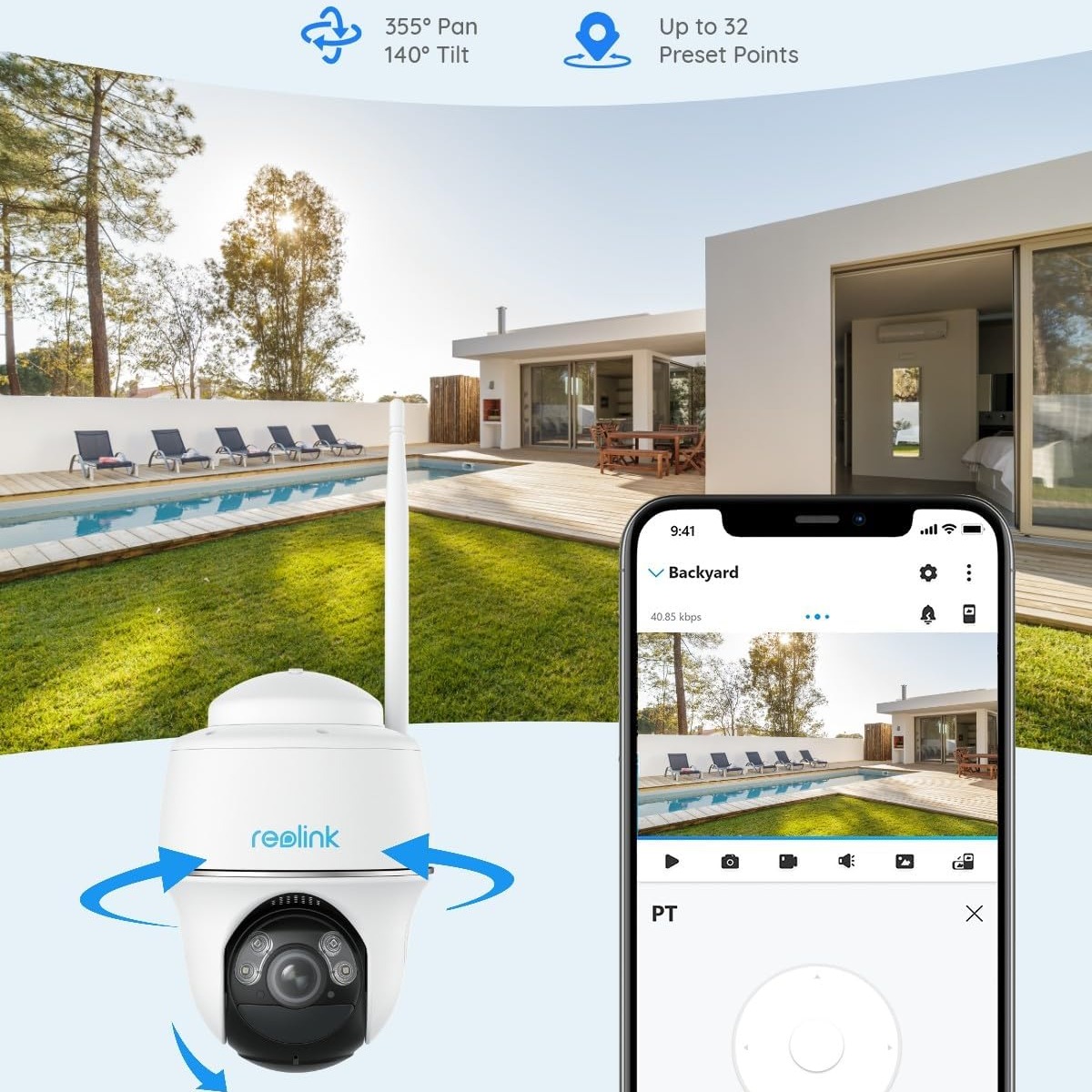 Budući da možete pomicati lijevo i desno, naginjati se gore i dolje, Reolink Argus PT osigurava potpunu pokrivenost bez slijepih točaka. S pomoću aplikacije možete daljinski upravljati funkcijom okretanja i naginjanja i uvijek budno paziti na svoje imanje, čak i ako se nalazite na drugoj strani svijeta.