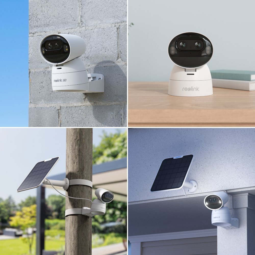 Reolink Argus Track:  Vanjska baterijska WiFi kamera s dvije leće (širokokutna+telephoto), 8MP rezolucija i 6x hibridni zoom automatski zumira prema osobama ili vozilima i prati ih rotacijom do 355°/50°. Ugrađen reflektor,  za noćno snimanje, dvosmjerna audio komunikacija, radi na 2,4 i 5GHz GHz WiFi mreži. Mogućnost spajanja na solarni panel.