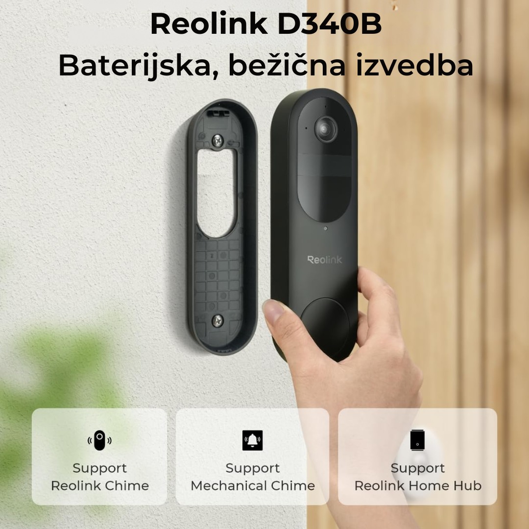 Reolink Doorbell Battery je idealno pametno rješenje za nadzor ulaza bez potrebe za žičnim napajanjem. Ugrađena punjiva baterija osigurava fleksibilnost u postavljanju, a moguće ga je spojiti i na stalno napajanje (12V ili 24V) uz priloženi adapter. Pogodno i za povezivanje na postojeću instalaciju starog zvona ako podržava napajanje.